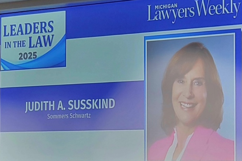 Sommers Schwartz proudly announces that Michigan Lawyers Weekly has named Senior Shareholder Judy Susskind to its annual list of “Leaders in the Law.” This is the second time Judy has received this honor. She and the other honorees were formally recognized at an awards luncheon on November 14, 2025.